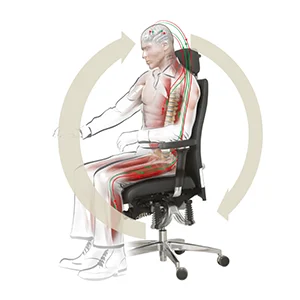 Die ständige Mikrobewegung verhindert punktuelle Belastungen der Bandscheiben, die bei gewöhnlichen Bürostühlen unvermeidbar sind.